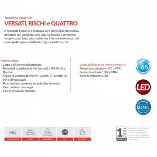 A Arandela Elegance IP65 é indicada para iluminação decorativa,
