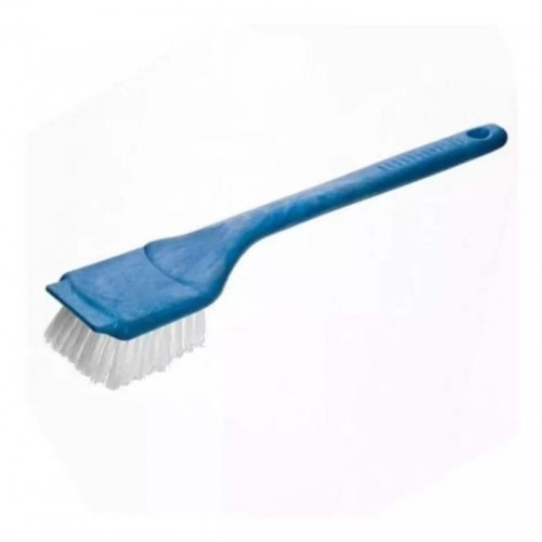 Escova com cabo longo e firme e cerdas duras e firmes para uso profissional e residencial em limpeza pesada.