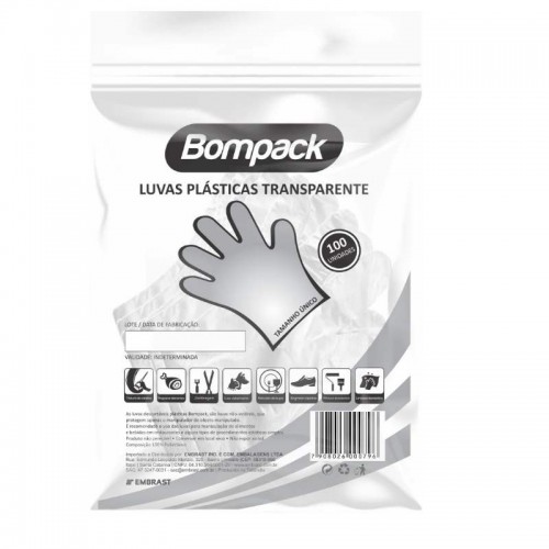 LUVA PLASTICA DESCARTAVEL BOMPACK TRANSPARENTE C/100