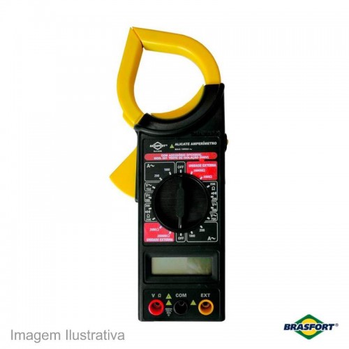 O Alicate amperímetro digital 8559 da Brasfort é um instrumento de medição que possui display digital, corrente alternada, tensão alternada e contínua, tensão contínua e sinal sonoro de continuidade.