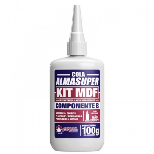 A cola instantânea Almasuper KIT MDF aceita aplicação em MDF cru,