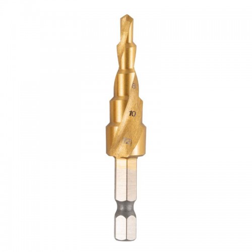 As brocas escalonadas são projetadas para perfurar furos de diferentes diâmetros em chapas e produtos de paredes finas, de aço até 4 mm, metais não ferrosos, aço inoxidável e plástico. Cada tamanho seguinte tem uma transição suave na forma de um passo, o que permite obter um furo limpo do diâmetro desejado.