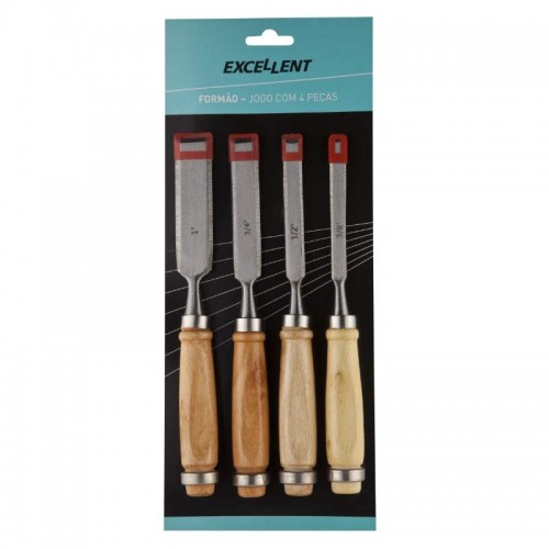 Kit c/ 4 Formões C/ Cabo De Madeira 2GC - Excellent