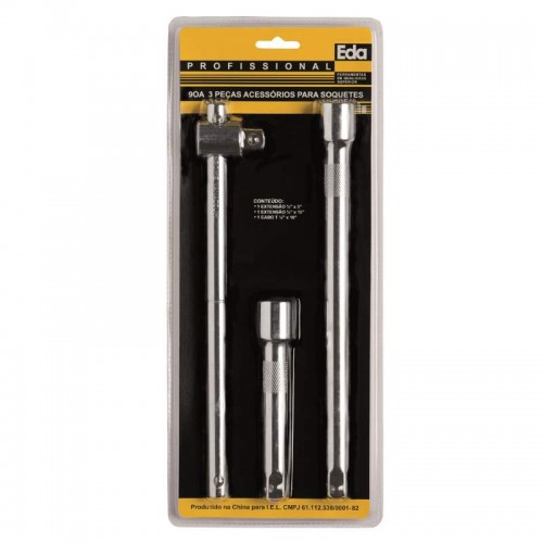 Aço cromo vanádio, encaixe 1/2", jogo com 3