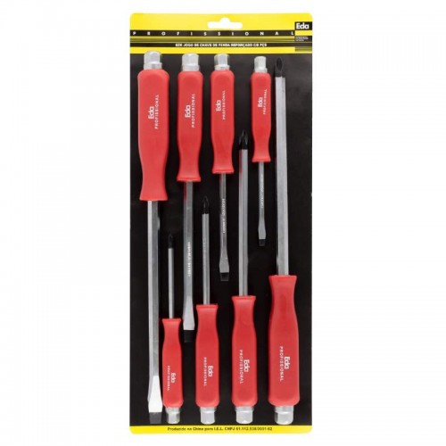 Jogo de Chaves de Fenda Reforçado com 8 peças. Com cabo reforçado com