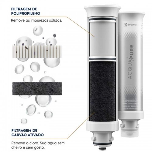Equipado com filtro com Tecnologia Acqua Pure, reduz cloro, odores