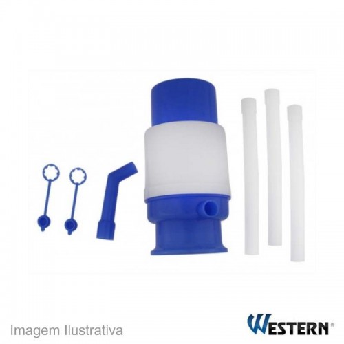 A Bomba para galão da Western é fácil de instalar e com encaixe universal, adaptável a maioria dps galões de água, não utiliza pilhas, pois é só pressionar o top da bomba para a saída da água.