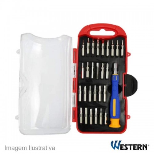 Estojo de chaves de precisão com 27 pontas, prolongador e cabo com encaixe imantado, ideal para trabalhar com celulares, eletrônicos e reparos em geral.