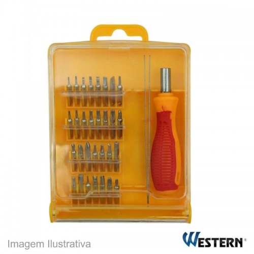 Estojo de chaves de precisão com 30 pontas, prolongador e cabo com encaixe imantado, ideal para trabalhar com celulares, eletrônicos e reparos em geral.