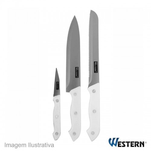 Kit açougueiro de 3 facas para carne com cabo branco e inox profissional Western.