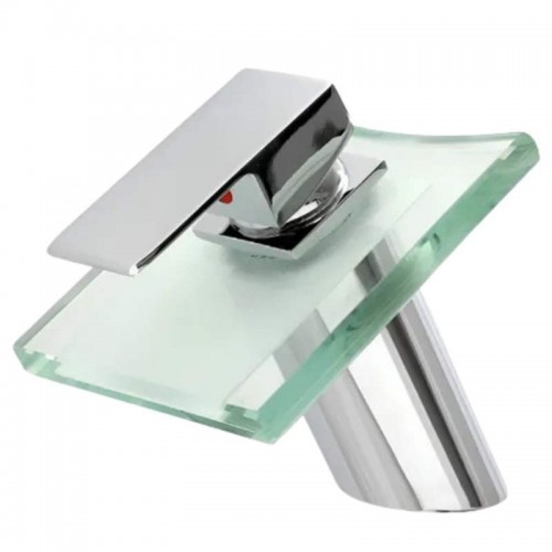 Torneira monocomando em vidro. Modelo Mônaco bica baixa misturador monocomando estilo cascata para lavatório de mesa.