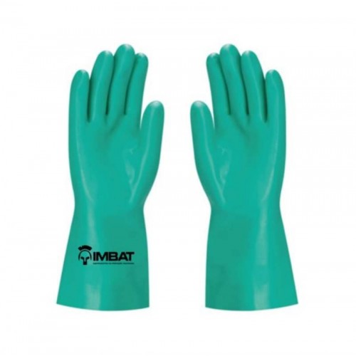 Luva de segurança confeccionada em látex natural de cor verde, internamente forrada, com acabamento antiderrapante na palma, face palmar dos dedos e pontas.