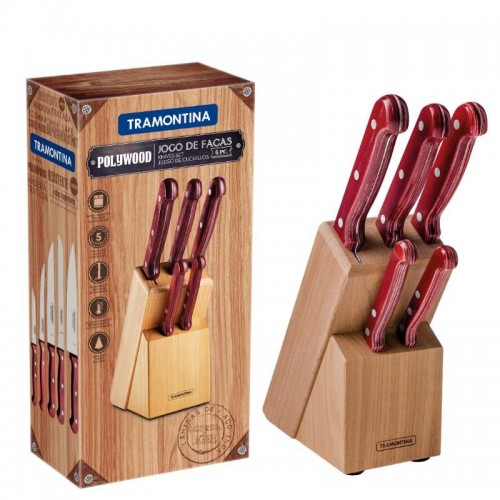 Tramontina Polywood com lâminas em aço inox e cabos de madeira tratada vermelho