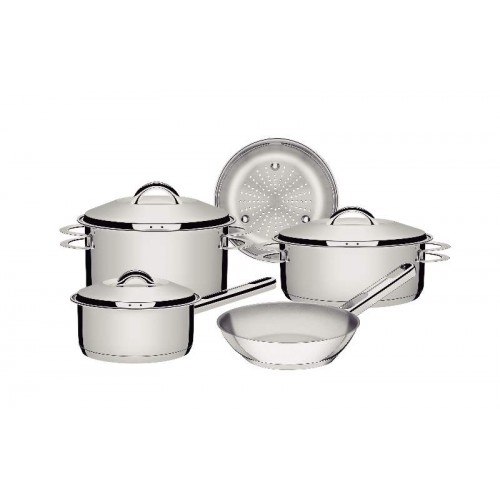 Totalmente produzidas em aço inox, as cinco peças mantém os alimentos saudáveis já que o material não solta resíduos. Trazem ainda a tecnologia de fundo triplo (aço inox + alumínio + aço inox) que distribui o calor uniformemente, proporcionando um cozimento mais rápido e uniforme, economizando energia e deixando os alimentos aquecidos por mais tempo. São peças versáteis que podem ir ao forno para gratinar ou finalizar pratos na temperatura máxima de 260°C e ser utilizadas em diferentes tipos de fogões. São fáceis de limpar devido ao desenho sem cantos, além de poderem ir à máquina de lavar louças diariamente. Além disso, levam mais estiloso para dentro da sua cozinha já que apresentam um moderno acabamento em alto brilho. Acompanham tampas com saída de vapor e encaixe perfeito. Garanta uma cozinha completa com esse jogo de panelas clássico da Tramontina!