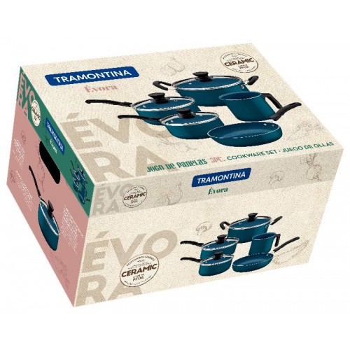 Jogo de Panelas Tramontina Évora em Alumínio com Revestimento Interno Cerâmico e Externo de Silicone Azul 5 Peças