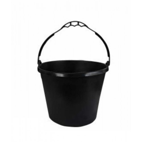 Balde plástico reforçado para concreto com pegador no fundo produzido em polipropileno. alça em PVC, espessura 4,5mm revestida por mangueira em pvc capacidade: 12 litros maior espessura de parede do balde pega-mão em todo contorno do fundo cor: preto