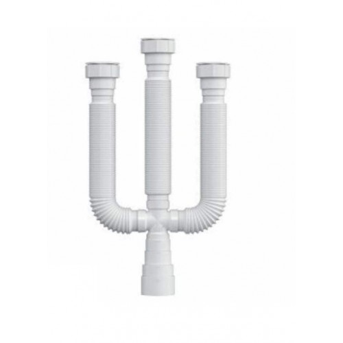 Sifão triplo Flexivel Plastuning próprio para cubas triplas, ligando três ralos (três cubas) a um único esgoto.