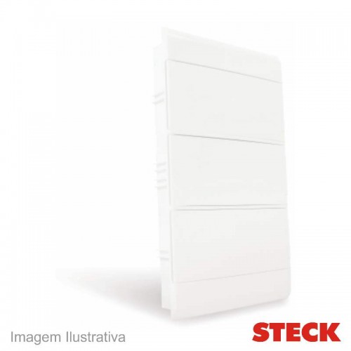 A linha da Steck é composta por quadros de distribuição de embutir e sobrepor. Por ser uma linha branca se destaca perfeitamente para aplicação residencial, assim como se encaixa bem para as demais aplicações industriais com os quadros de portas fumê.