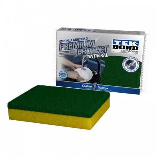 ESPONJA MULTIUSO PREMIUM TEKBOND é produzida com espuma e manta abrasiva e poderoso agente antiviral e antibacteriano que elimina 99,9% dos vírus* e das bactérias**. Garante excelente poder de limpeza e qualidade superior. Desenvolvida para lavagem de louças, a manta verde utilizada na limpeza de alumínio e ferro e a espuma amarela utilizada para limpeza de superfícies delicadas, vidros, louças, pias e talheres.