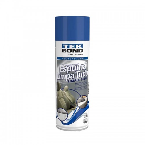 A Espuma Limpa Tudo da Tekbond é um produto desenvolvido para limpeza à seco, de ação rápida e eficiente. Ideal para limpar os mais diversos tipos de superfícies laváveis tais como o interior dos carros, carpetes, estofados, paredes, plásticos, vinil e formica.